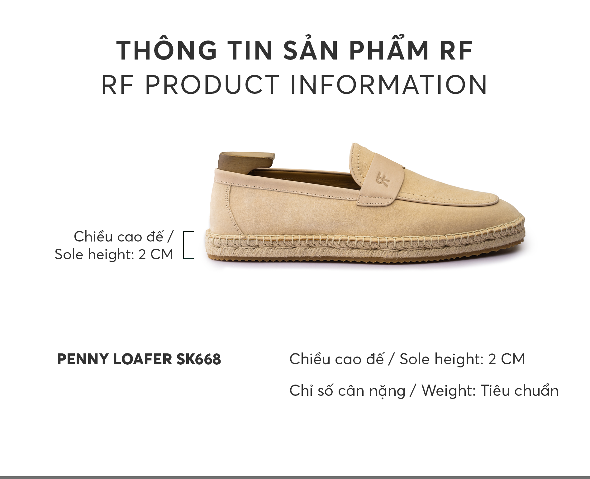 Giày da bê cao cấp Penny Loafer Espadrille RF SK668