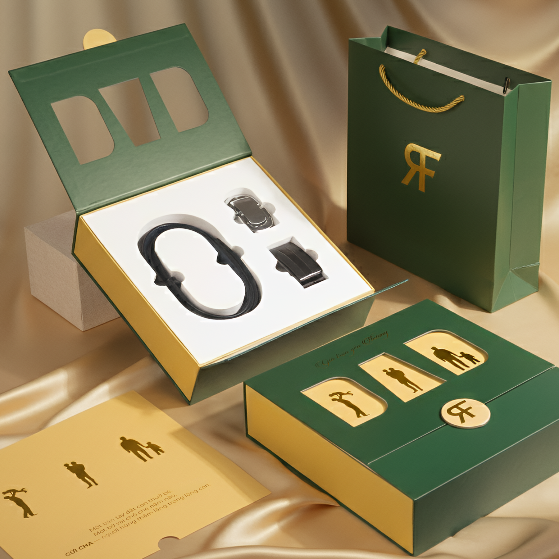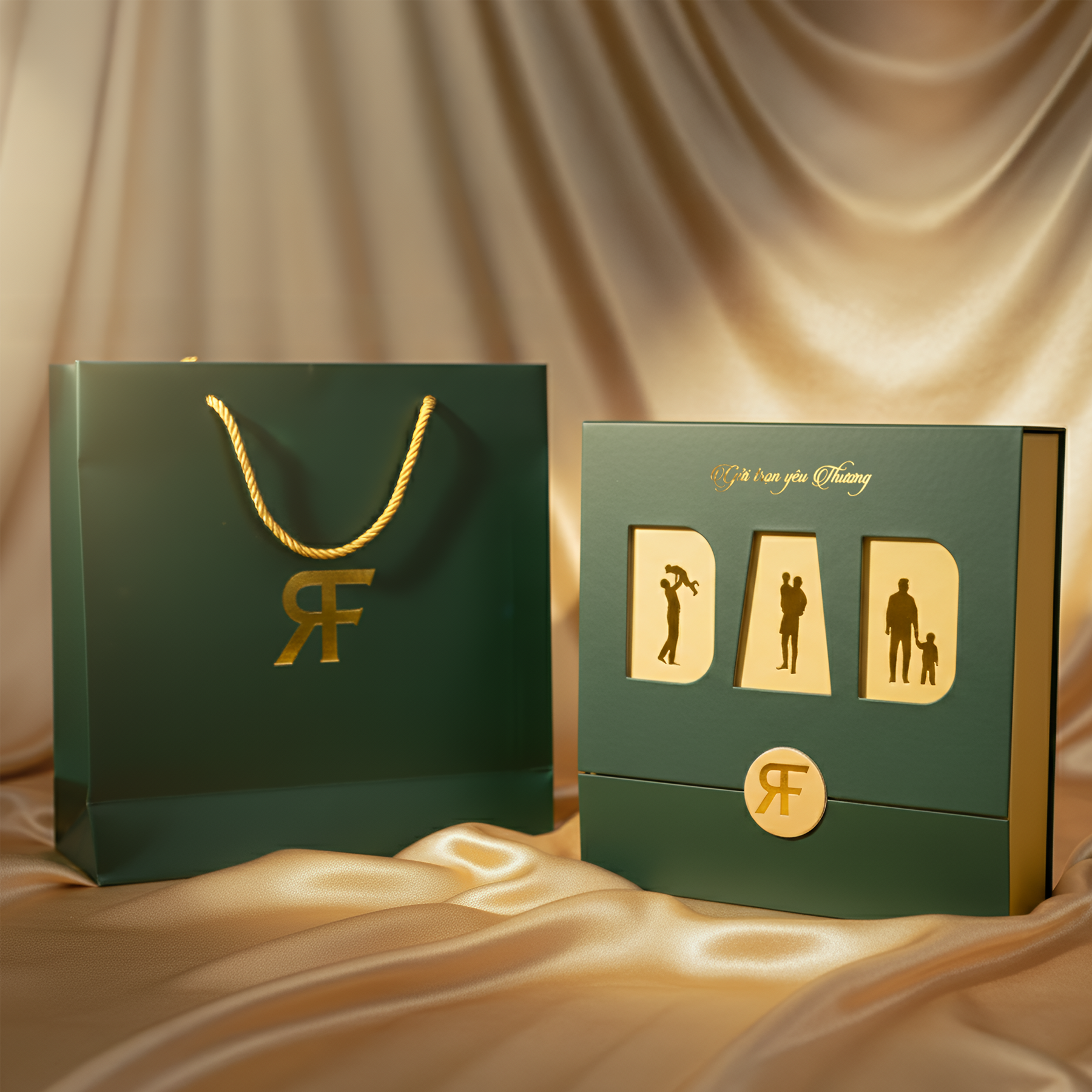 - 01 hộp và 01 túi cao cấp, đồng bộ sắc xanh – vàng sang trọng.